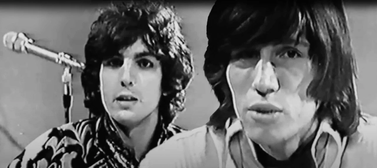 (above: Syd Barrett and Roger Waters of Pink Floyd on BBC TV’s ‘The Look of the Week’, May 1967)